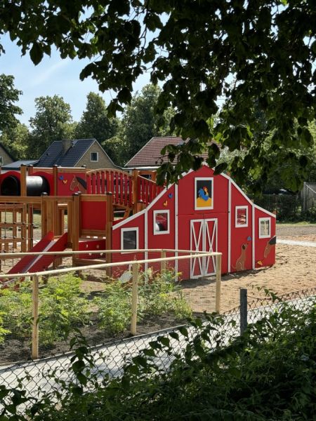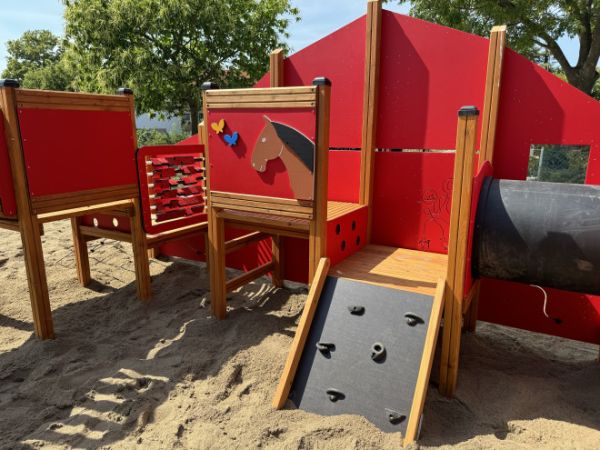 Barn est idéal pour les aires de jeux publiques ou privées, apportant une touche ludique et éducative qui encourage l’activité physique et la socialisation. Sa conception thématique évoquant une grange stimule l’imaginaire des enfants tout en favorisant le développement de leurs capacités motrices et leur coordination.