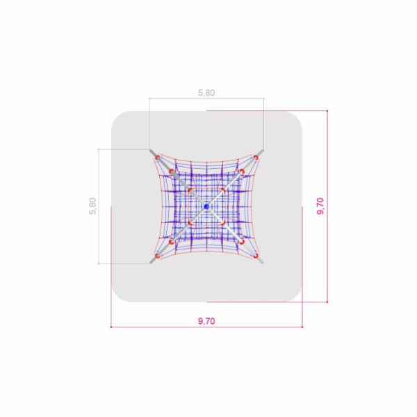De plus, une zone de sécurité recommandée de 970x970 cm entoure le Breva Climbing Net. Cette zone généreuse permet aux enfants de se déplacer librement et en toute sécurité autour du filet, minimisant le risque de collisions avec d'autres équipements de jeu ou utilisateurs.