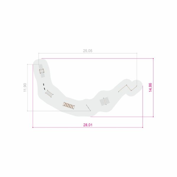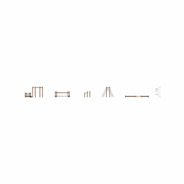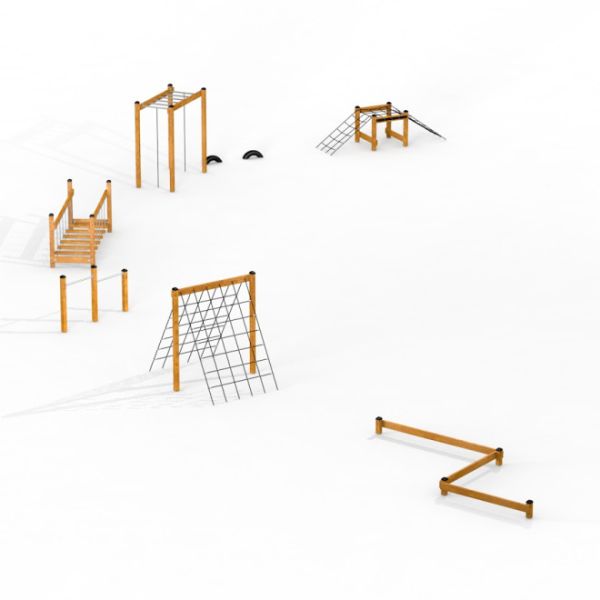 Le parcours s'étend sur 2505 cm de largeur, 1190 cm de longueur, et atteint jusqu'à 216 cm de hauteur, nécessitant une zone de sécurité de 2801x1486 cm. Sa conception accueille une hauteur de chute critique allant jusqu'à 205 cm, avec une surface de chute sécurisée obligatoire. Résistant aux éléments météorologiques tels que la neige, la pluie, le gel, le vent et les rayons UV, et conçu pour résister à un usage intensif, le Classic Nature Trim Trail n'est pas seulement une source de plaisir sans fin, mais aussi un investissement durable dans le développement physique et le plaisir en plein air.