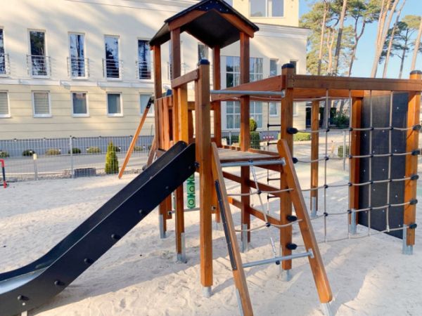 Au cœur de son design, le captivant toboggan permet aux enfants de vivre la sensation palpitante de la descente, renforçant leur confiance et leurs compétences motrices. La plateforme, placée à une hauteur de 120 cm, est facilement accessible via divers équipements d'escalade, y compris des échelles et des filets variés, chacun encourageant le développement de la coordination, de l'équilibre et de la force physique.