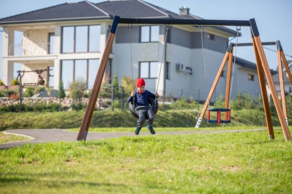 Le Double Swing, issu de la distinguée ligne Discovery, est une incarnation de qualité et d'innovation. Son attrait esthétique, combiné à une touche de couleurs vives, en fait un attrape-regard immédiat dans n'importe quel cadre de terrain de jeu. Plus que son charme visuel, le Double Swing se vante d'une construction robuste qui privilégie la sécurité sans compromettre le plaisir de jouer. La structure, faite de bois résistant de mélèze, assure sa durabilité, tandis que les composants en acier revêtus de poudre ajoutent une couche de protection supplémentaire contre les éléments. Le mouvement de la balançoire est amélioré par des chaînes en acier inoxydable, garantissant une expérience fluide et sans friction à chaque utilisation.