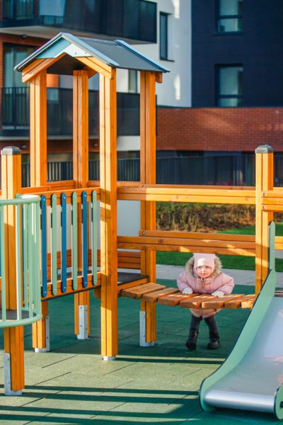 Découvrez la "Tour aire de jeux avec toboggan" de la Discovery Line, une forteresse en bois conçue spécialement pour les petits champions âgés de 3 ans et plus. Conçue comme une citadelle de divertissement, Warownia II est l'apogée du plaisir et de la sécurité, répondant aux normes rigoureuses établies pour les aires de jeux publiques.