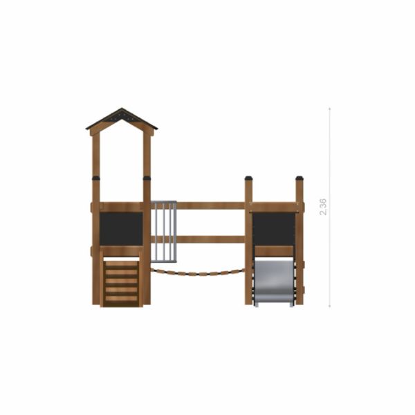 Découvrez le Fortress Nature Playhouse avec toboggan, une structure de jeu multifonctionnelle magnifique de la ligne Classic Nature, parfaite pour les aires de jeux, les maternelles et les écoles élémentaires. Cette forteresse, conçue avec durabilité et sécurité à l'esprit, est un témoignage de qualité et d'aventure, invitant les enfants de un à huit ans à explorer et conquérir ses royaumes.