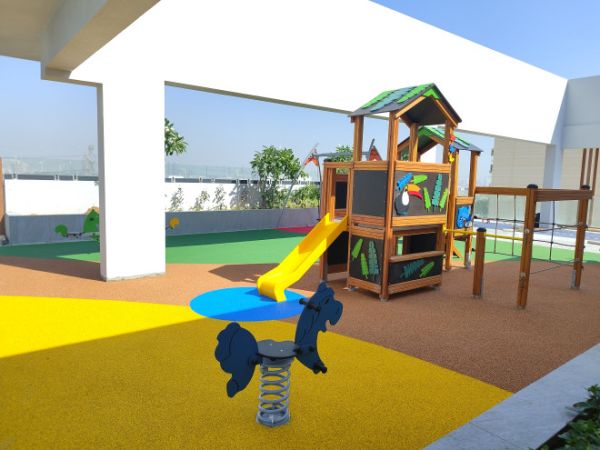 Les enfants dès l'âge de 3 ans peuvent libérer leur côté sauvage en escaladant ses murs d'escalade miniatures, en se balançant depuis les barres en acier inoxydable, et en s'aventurant à travers ses zones filetées. Le toboggan, une descente étincelante en acier inoxydable, offre une échappée rapide, semblable à une fuite palpitante devant un prédateur de la jungle.