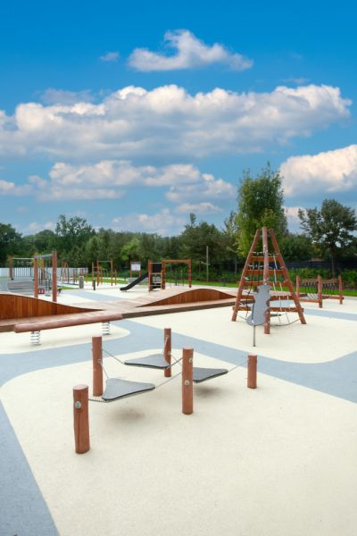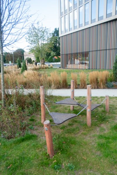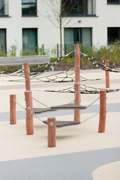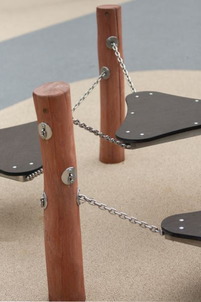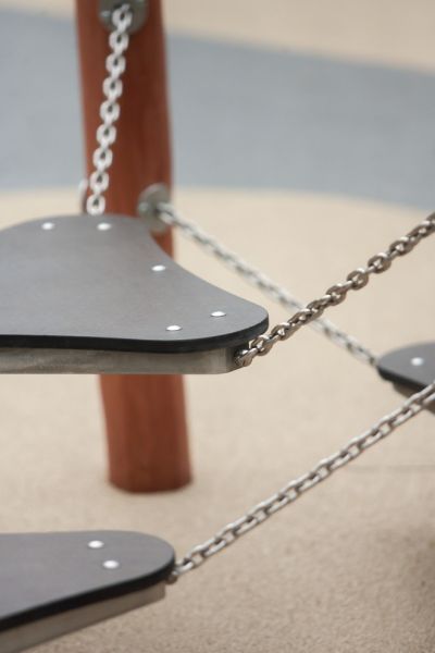 Dotée d'éléments en contreplaqué antidérapants et imperméables, Kentucky assure une expérience de jeu sécurisée pour les jeunes aventuriers. Les chaînes de haute qualité incluses dans le design ajoutent non seulement un élément de défi, mais sont également certifiées pour la sécurité, répondant aux normes rigoureuses pour terrains de jeux.