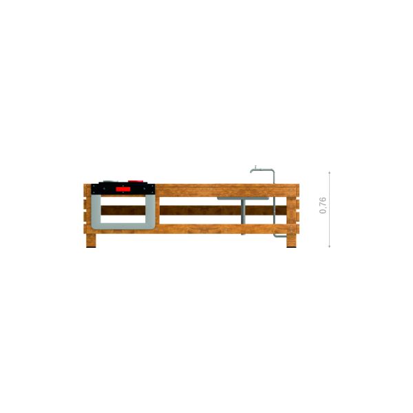 Le Kitchen Table nécessite un espace minimum de 500x356 cm, offrant suffisamment de place pour que les enfants puissent se déplacer et explorer leur créativité culinaire. La hauteur critique de chute est de 0 cm, soulignant le design au niveau du sol qui assure la sécurité pendant le jeu. Le besoin d'une surface de chute est éliminé, ce qui le rend facile et pratique à ajouter à tout terrain de jeu ou salle de jeux.
