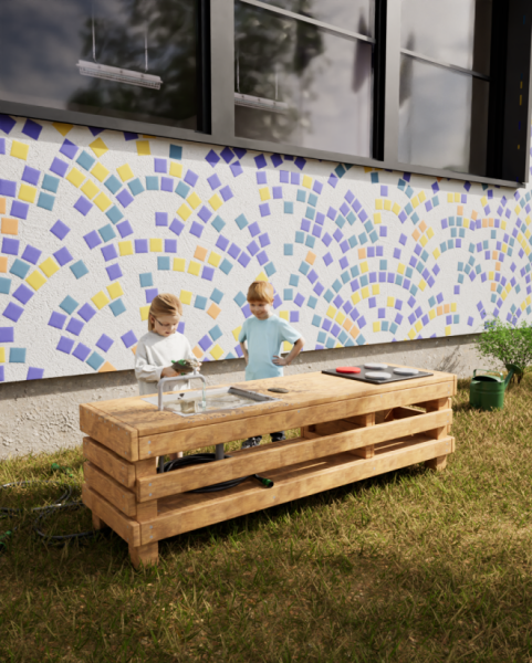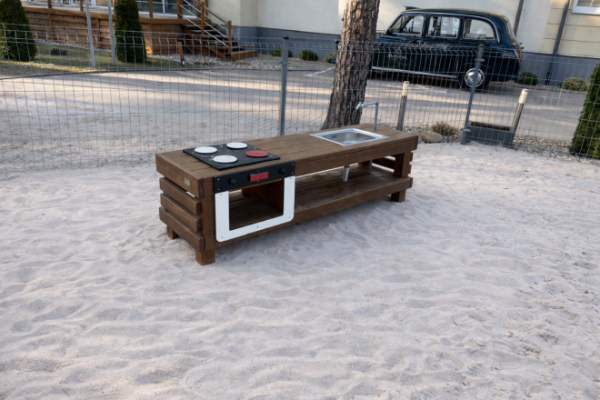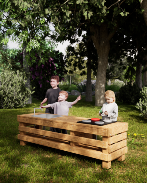 Fabriqué à partir d'un mélange de matériaux de première qualité, le Kitchen Table garantit durabilité et sécurité. La base est faite en bois de mélèze robuste, connu pour sa longévité et sa résistance à la décomposition. Complétant ce cadre en bois robuste, des composants en acier inoxydable, en acier galvanisé et en PE/Plastique, chacun choisi pour leur durabilité et leurs propriétés adaptées aux enfants. Ces matériaux garantissent que le Kitchen Table résiste à l'usure de nombreuses séances de cuisine, maintenant son attrait pendant de nombreuses années.