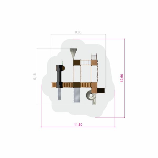 Le Château Mastodon avec toboggan se dresse comme un ajout monumental à tout espace de jeu, attirant les jeunes aventuriers avec son ampleur grandiose et sa multitude d'activités. S'étendant sur une largeur impressionnante de 880 cm et une longueur de 916 cm, cette structure imposante culmine à une hauteur de 323 cm. Conçu pour les enfants de 3 ans et plus, il offre une expérience de jeu passionnante et diversifiée, dans une vaste zone de sécurité de 1266x1180 cm.