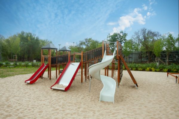 Au cœur du château se trouve une série de toboggans installés à des hauteurs variées de 120 cm, 150 cm, et un audacieux 210 cm. Ces toboggans offrent une gamme d'expériences palpitantes, allant d'une glissade douce à une descente exaltante, répondant aux enfants ayant différents niveaux d'esprit d'aventure.
