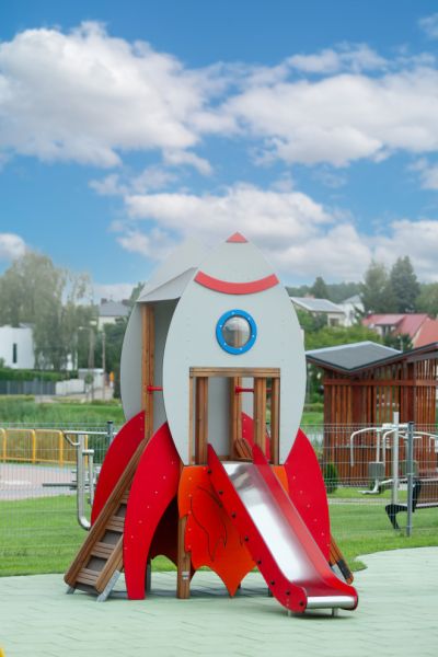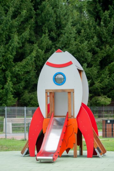 Découvrez la maison de jeu fusée Back to list avec toboggan de la prestigieuse ligne Discovery : une merveille sur le thème de l'espace conçue pour propulser les petits astronautes directement dans l'univers de l'imagination. Avec son design épuré et ses couleurs qui évoquent un voyage céleste, les enfants sont sûrs de se lancer dans d'innombrables aventures spatiales sans jamais quitter le terrain de jeux.
