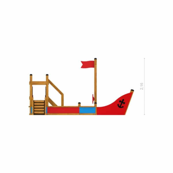 Chaque enfant peut embrasser son âme de capitaine en prenant la barre sur le volant rouge du bateau, situé à la proue. Pour renforcer l'expérience réaliste, la structure de jeu est ornée d'un drapeau rouge au sommet d'un mât en bois et d'une ancre à la proue.