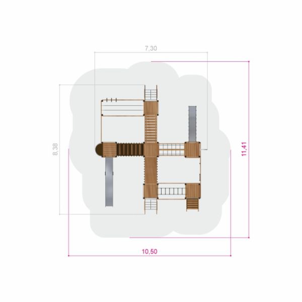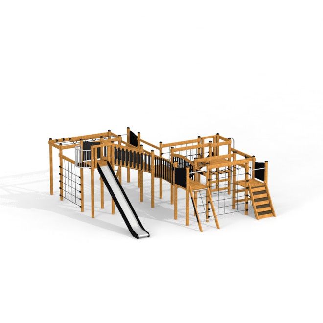 Reflétant les complexités d'une véritable station spatiale, cet équipement de terrain de jeu multifonctionnel combine une variété d'activités physiques. Il intègre des appareils d'escalade, divers ponts et passerelles, ainsi que de nombreuses options de toboggans, chacun conçu pour favoriser l'agilité, l'équilibre et la coordination. Avec des hauteurs de plateforme à 120 cm, 150 cm et 210 cm, les enfants de différents groupes d'âge et niveaux de compétence sont également pris en charge.