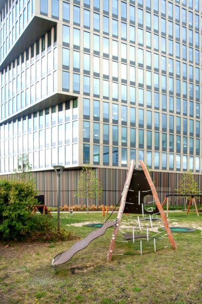La hauteur impressionnante du Tipi II Climbing Net, qui dépasse trois mètres, élève les sensations et l'excitation du jeu. Elle crée un défi vivifiant pour les enfants et évoque un sentiment d'accomplissement et de joie lorsqu'ils atteignent le sommet. Étant donné sa hauteur, l'incorporation d'une surface de sécurité est cruciale pour amortir d'éventuelles chutes et assurer un environnement de jeu plus sûr. Une zone de sécurité d'environ 661x715 cm est également recommandée autour du filet d'escalade pour plus de précaution.