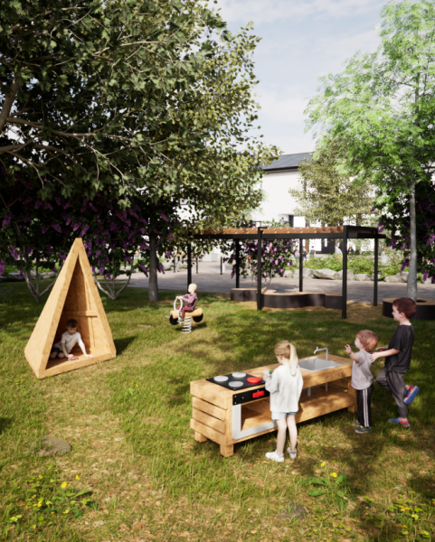 L'espace minimum requis pour cette charmante structure est de 480x456 cm, lui permettant de s'intégrer parfaitement aux espaces plus restreints tout en offrant amplement de place pour des activités ludiques. La hauteur de la plateforme de 14 cm est idéale pour les tout-petits, garantissant un accès facile et un environnement de jeu sûr.