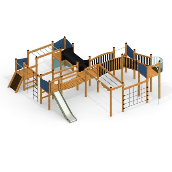 Inspiré des fortifications historiques, ce château avec toboggan combine des éléments d'escalade et d'équilibre pour défier et engager ses jeunes aventuriers. Offrant des hauteurs de plateforme variées de 90 cm, 120 cm, et 180 cm, il propose une gamme de zones d'activité conçues pour s'adapter à différents niveaux de compétence. Les enfants peuvent tester leur agilité sur l'échelle suspendue, grimper sur le mur incliné, naviguer à travers le filet de corde ou traverser l'échelle horizontale. Le pont mouvant ajoute une touche de frisson, tandis que le tunnel favorise le jeu imaginatif. Divers toboggans offrent une descente rapide et excitante, offrant une finale exaltante à l'aventure du château.