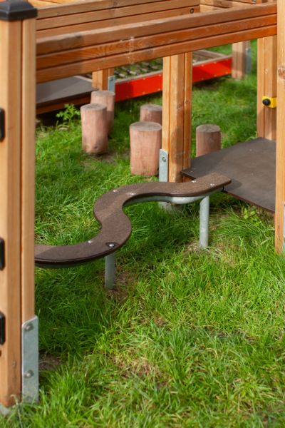 La construction de Trixie met l'accent sur la durabilité et la sécurité. Ancrée dans un bois de mélèze solide, complétée par des éléments en acier thermolaqué, et accessoirisée avec des cordes renforcées (PP-Polypropylène), cette structure assure une longue durée de vie. La zone de jeu bénéficie également d'une surface antidérapante, de contreplaqué imperméable, d'une chaîne en acier inoxydable et de composants en HDPE, garantissant un environnement sécurisé pour chaque interaction ludique.