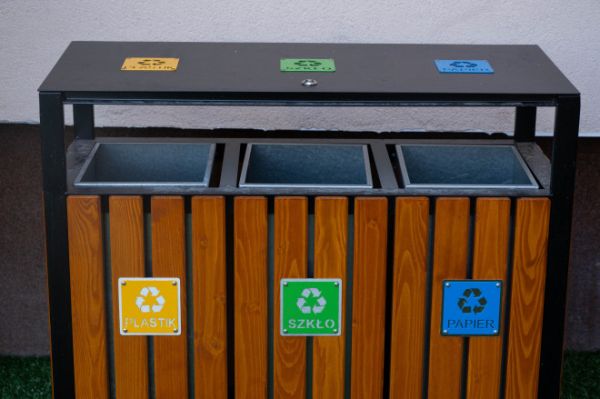 Wooden recycling bin – Solution élégante pour un tri sélectif efficace.