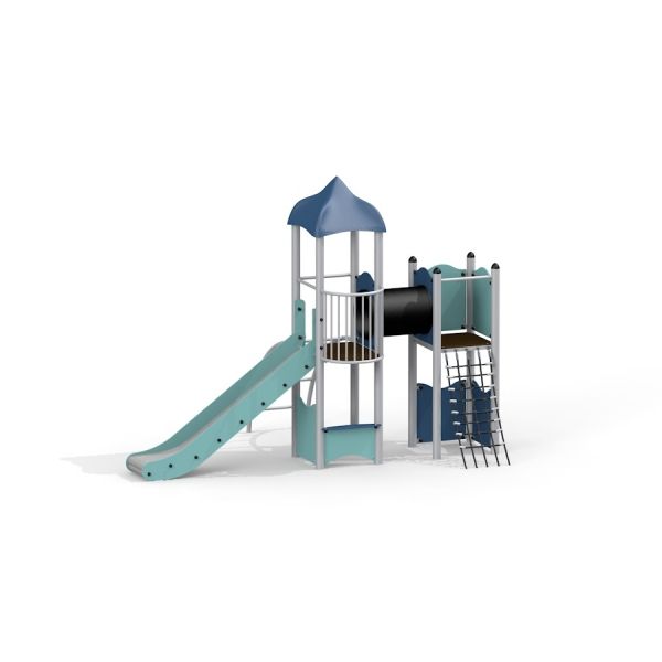 Ladybug playhouse with slide, steel structure - Vue isométrique