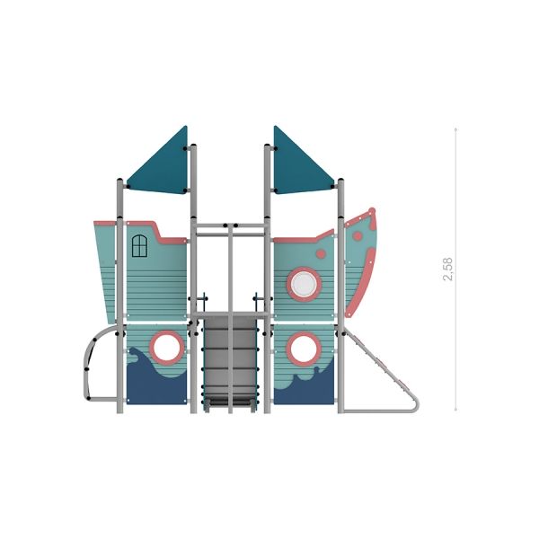 Pirate Ship playhouse with slide, steel structure - Vue de face