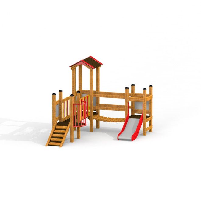 Fortress playhouse with slide - Vue isométrique