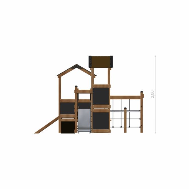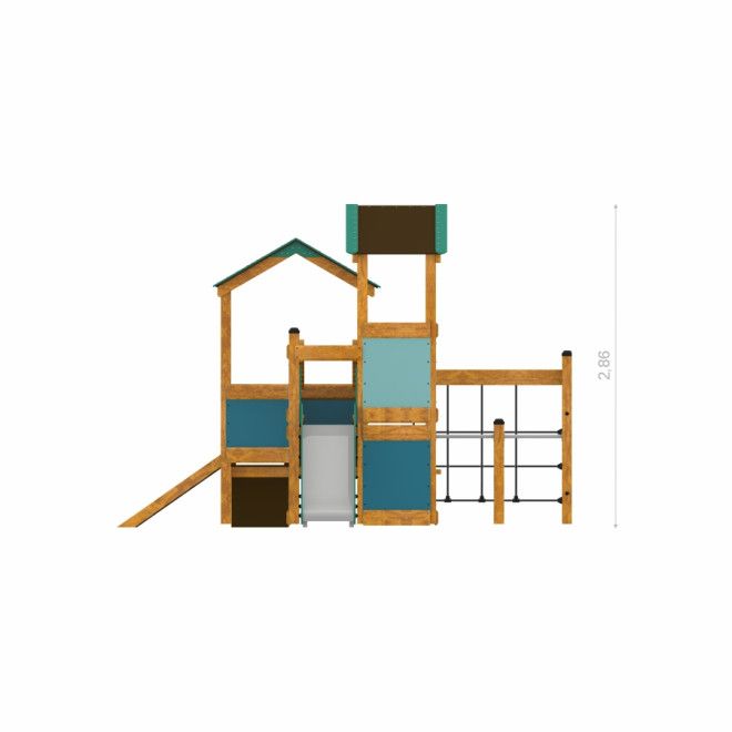 Tower Nature wooden playhouse with slide - Vue de face