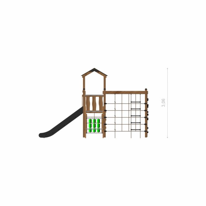 Climbing Kiosk Modern Nature wooden playhouse with slide - Vue de face